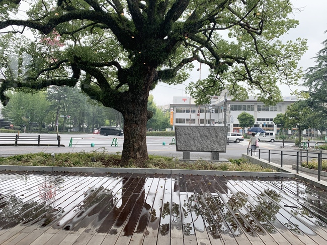 お昼時とも有って 長蛇の列 カウンターでクスノキを眺めながら・・・