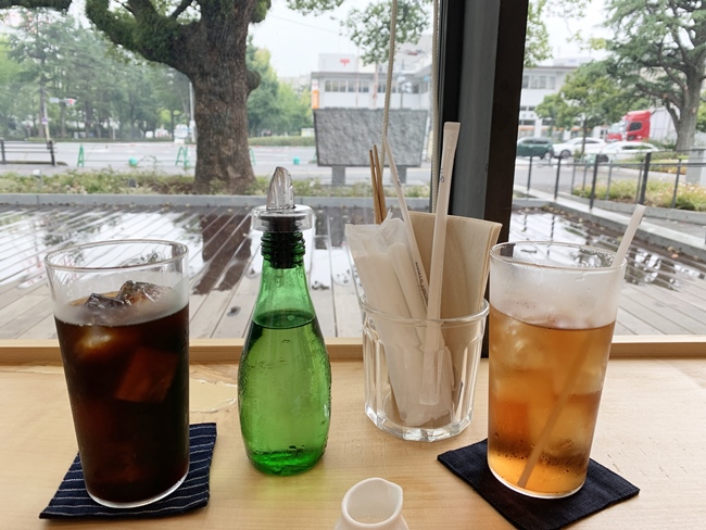 天井高く、ガラス張りの店内からは外のクスノキを眺める事が出来