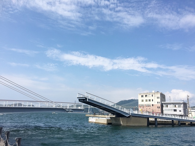 全長約108m 日本最大級の歩行者専用はね橋で1日6回水面に対し60度に~